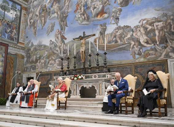 |   L’umiliazione della Chiesa cattolica davanti a un eretico concubinario massone globalista di Mons. Carlo Maria Viganò ![]() Cappella Sistina - 23 ottobre 2025 Re Carlo III prega col Papa E Carlo III, oltre ad essere eretico come Enrico VIII, è anche massone, neomalthusiano e apertamente schierato con l’élite del Nuovo Ordine Mondiale. Se quella di Clemente VII era la Chiesa cattolica, che chiesa è quella di Leone, che con parole e azioni sconfessa e tradisce tutto il magistero dei Papi fino a Pio XII e calpesta la testimonianza eroica dei cattolici inglesi durante la persecuzione anglicana? La preghiera ecumenico-ambientalista nella Cappella Sistina sancisce l’abdicazione del papato romano e l’umiliazione della Chiesa cattolica dinanzi a un eretico concubinario massone globalista, che mantiene il titolo di Defensor Fidei mentre si prostra all’Islam e celebra le feste maomettane. Queste aberrazioni ci fanno pensare che gli ultimi tempi siano ormai prossimi e che l’apostasia nella Chiesa annunciata dalla Vergine Maria Fatima sia ormai già iniziata.  |