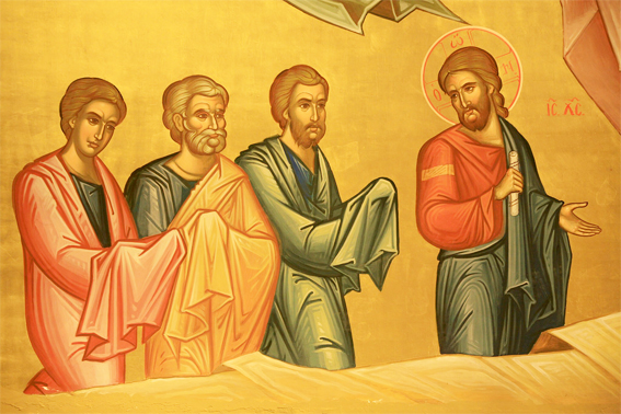 | Gesù conosce il cuore dei Suoi amici ![]() Gesù e tre Apostoli: San Pietro, San Giacomo e San Giovanni Mentre era a