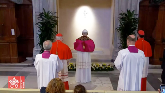 | Leone XIV: dalla speranza al dubbio, dal dubbio alla delusione ![]() Papa Leone in raccoglimento davanti alla tomba di Papa Francesco Il 14 settembre 2025, il vaticanista Aldo Maria Valli, sul suo blog, augurava un buon compleanno a Papa Leone XIV: «Oggi, Francis Robert