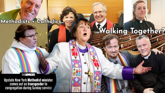 | La diabolica follia del nuovo libro del Vaticano sul dialogo tra metodisti e pseudo-cattolici ![]() Metodisti e cattolici … camminano insieme ? Il Vaticano ha pubblicato recentemente un breve libro sui progressi del dialogo ecumenico fra cattolici e metodisti: «Crediamo in un solo Dio». Questo recente lavoro di diabolico disorientamento dovrebbe essere un campanello d’allarme per tutti i cattolici serii, affinché denuncino senza ambiguità il falso movimento ecumenico che imperversa da 60 anni. Come riporta OSV News, la casa editrice del Vaticano ha recentemente pubblicato un breve libro sui progressi del dialogo ecumenico fra cattolici e metodisti: «Crediamo in un solo Dio: sessant’anni di cammino comune dei metodisti e dei cattolici»: “Per Celebrare quasi sei decenni di dialogo teologico cattolico-metodista, la casa editrice del Vaticano ha pubblicato un libro che riassume le questioni su cui i dialoganti hanno concordato ed elenca brevemente le questioni su cui si sta ancora lavorando. Il libro «Crediamo in un solo Dio: sessant’anni di cammino comune dei metodisti e dei cattolici», è basato sui risultati di 11 rapporti prodotti dalla Commissione Internazionale Metodista - Cattolica-Romana a partire dall’inizio del formale dialogo nel 1967 Vale la pena approfondire alcuni temi del libro, perché ci aiuteranno a comprendere il vero significato di molti degli sviluppi più inquietanti avvenuti a Roma negli ultimi sessant’anni. Tuttavia, in generale possiamo giudicare questo libro dalla copertina che “presenta un particolare della vetrata della Resurrezione della chiesa metodista unita della Resurrezione che si trova a Leawood, nel Kansas, la quale include immagini di Giovanni XXIII, oggi santo, John Wesley (fondatore della religione metodista), Santa Teresa d’Avila e altri”. Al pari della rappresentazione nella vetrata di cattolici e protestanti artificialmente raggruppati senza alcun collegamento con la realtà, il libro riflette sessant’anni di artificiosi tentativi di armonizzare il pensiero cattolico e quello metodista, anche qui senza alcun collegamento con la realtà. Qui è il caso di soffermarsi a riflettere sulla diabolica crudeltà di questo messaggio. Chi trae beneficio dal diffondere il messaggio che potrebbe non esserci una punizione eterna per coloro che muoiono in stato di peccato mortale? Solo Satana e i nemici del cristianesimo, persuadendo le anime che Gesù e la Chiesa si sbagliavano su questa questione di fondamentale importanza. Alcuni cattolici potrebbero non conoscere John Wesley, il fondatore della religione metodista, raffigurato sulla copertina del libro insieme a Giovanni XXIII e Santa Teresa d’Avila. La seguente descrizione, tratta dal sito web della Chiesa Metodista Unita, ci offre uno scorcio sul signor Wesley, che si collega alle discussioni contenute nel nuovo libro. “L’Aldersgate Day si celebra
