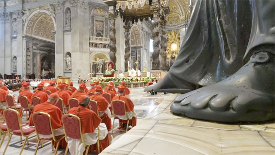 | Cinque traguardi per la Santa Sede nel 2026 ![]() Cardinali nella Basilica di San Pietro 1. Chiusura del Giubileo romano Il prossimo 6 gennaio 2026 il Papa chiuderà solennemente la Porta Santa della Basilica di San Pietro. Circa 35 milioni di pellegrini hanno visitato Roma per il Giubileo. Questa sarà la seconda volta che un Papa chiude un Giubileo senza averlo aperto. 2. Concistoro straordinario Il 7 e l’8 gennaio 2026 si svolgerà a Roma un Concistoro straordinario. Questo raduno di tutti i cardinali dovrebbe permettere di cogliere con chiarezza gli orientamenti del nuovo pontificato. 3. Viaggi apostolici Sono in programma dei prossimi viaggi apostolici. Il Sommo Pontefice dovrebbe recarsi nel continente africano e in quello sudamericano. 4. Attuazione della sinodalità Il 2026 è considerato l’anno in cui vi sarà la concreta attuazione della sinodalità, col rischio dell’implosione di alcune Chiese particolari, come quella tedesca. 5. Prima Enciclica Il Papa dovrebbe promulgare nel 2026 la sua prima Enciclica. Sono aperte le scommesse. E si spera che il nuovo anno sia quello in cui la Chiesa potrà riappropriarsi, almeno in parte, della sua Tradizione. |