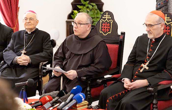 | Santo Sepolcro - i punti fermi ![]() Padre Ielpo (al centro) e il cardinale Pizzaballa (a destra) conferenza stampa 31 marzo 2026 Nel pomeriggio di quest’oggi , 31 marzo 2026, a Gerusalemme il Patriarca latino cardinale Pierbattista Pizzaballa e il Custode di Terra Santa, Padre Francesco Ielpo, hanno incontrato i giornalisti nella sede della curia patriarcale. La conferenza stampa, fissata già da giorni, avrebbe dovuto verosimilmente concentrarsi sulla Pasqua e sul suo significato per la comunità cristiana in questa nuova stagione di guerra nella regione mediorientale. L’incidente della scorsa Domenica delle Palme, con la polizia israeliana che ha impedito ai due uomini di Chiesa di raggiungere la Basilica del Santo Sepolcro per le celebrazioni previste, ha imposto di mettere l’accento su alcuni aspetti particolari e non secondari. Il primo a prendere la parola è stato Padre Ielpo, che ha letto in lingua inglese una dichiarazione volta a mettere i puntini sulle i e difendere i diritti della Chiesa, senza intenti polemici ma anche senza tentennamenti (clicca qui per la versione integrale dell’intervento, tradotto dalla nostra redazione). Ecco in sintesi i concetti espressi da Padre Ielpo e condivisi dal Patriarca: • la Chiesa cattolica nei