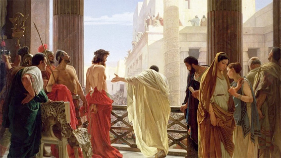![]() Gli scagnozzi di Pilato circondano Gesù, i soldati romani trattengono con difficoltà la folla esaltata, sovreccitata dall’eterno sistema dei capi: gli dicono di gridare, ed essa grida, di uccidere, ed essa uccide, la folla non è cambiata … e neanche i suoi capi. Il procuratore romano siede sul suo trono d’avorio: debole di volontà, egli ama apparire forte. Lo attorniano le sue guardie, i suoi scagnozzi e i suoi soldati: io sono Pilato l’ambizioso, difenderò timidamente Gesù, ma soprattutto niente storie: imporrò il silenzio a tutte le minacce, tranne quella di non essere più amico di Cesare … l’amico di Cesare … la grande ansietà degli uomini, quella alla quale immolano la fede della loro giovinezza e le convinzioni del loro cuore. Si tratta di assumersi la responsabilità di essere veramente un capo, e tu proponi, o Pilato, di liberare quel mascalzone di Barabba! «Chi volete che vi liberi? Gesù o Barabba?». La politica dell’apparenza … «Barabba, libera Barabba! Hai sentito, Pilato?». Ecco a cosa si arriva quando si vuole salvare la propria poltrona d’avorio, il proprio seggio di deputato o di senatore, piuttosto che dire la verità. Pilato, sei un personaggio disgustoso, puoi lavarti le mani, codardo che sei, ma non pensi dunque che quando sei al potere, per lavarti le mani nell’acqua del rispetto umano, bisogna ad un certo punto abbandonare le redini dell’autorità al capriccio criminale degli scagnozzi che ti circondano … di questo ne sai qualcosa, o Pilato di tutti i tempi! Tu chiedi a Gesù: «Cos’è la verità?». O Pilato, ci sono degli uomini che a causa della loro malafede e della loro ambizione, non meritano più che si dica loro la verità. Vattene, lascia il tuo trono d’avorio, esci dalla Giudea, o nuovo Caino perseguitato dai rimorsi, ritorna in Italia, attraversa le Alpi e, in un ultimo atto di codardia, gettati nelle acque del Rodano, per non riapparire mai più agli occhi dell’umanità. Crocifiggilo!