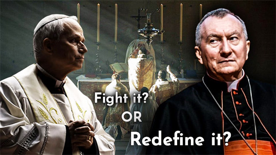 | Papa Leone “apre” al Vetus Ordo Vescovo belga spinge per un clero sposato: tensione o coerenza? ![]() Papa Leone XIV parla di “unità” nella vita liturgica della Chiesa – ma dietro il linguaggio della riconciliazione si cela un interrogativo più profondo: unità in quale verità? Mentre il cardinale Parolin raddoppia la posta in gioco, i vescovi progressisti promuovono riforme radicali, il futuro della Messa tradizionale potrebbe non essere la soppressione, ma qualcosa di più sottile – e più pericoloso. Il significato della lettera di Papa Leone ai vescovi francesi Lo scorso 18 marzo, il cardinale Parolin ha inviato, in nome di Papa Leone XIV, una lettera ai vescovi francesi riuniti in assemblea plenaria a Lourdes dal 24 al 27 marzo 2026, nella quale il Papa ha sottolineato, tra l’altro, che egli è “particolarmente attento” alla questione liturgica: “nel contesto della crescita delle comunità legate al Vetus Ordo” Questo riferimento ha entusiasmato molti cattolici vicini al mondo della Tradizione. Tuttavia, leggiamo tale riferimento della lettera nella sua interezza: “E’ preoccupante che nella Chiesa continui ad aprirsi una dolorosa ferita relativa alla celebrazione della Messa: il vero sacramento dell’unità. Per sanare [questa ferita] è certamente necessario avere uno sguardo nuovo su ciascuno di noi, con una maggiore comprensione della propria sensibilità; uno sguardo che permetta ai fratelli ricchi di diversità di accogliersi a vicenda nella carità e nell’unità della fede. Possa lo Spirito Santo suggerirvi soluzioni concrete che vi permettano di includere generosamente coloro che sono sinceramente legati al Vetus Ordo, in conformità con le linee guida stabilite dal Concilio Vaticano II in materia di liturgia”. Questa lettera si colloca in un contesto e in un momento storico molto particolari. La Francia odierna è uno di quei paesi occidentali in cui si registra un picco di conversioni al cattolicesimo ampiamente connesse col mondo tradizionale. Non si tratta solo di comunità riconducibili alla Fraternità Sacerdotale San Pio X, come dimostra per esempio l’annuale pellegrinaggio a Chartres, che testimonia una vitalità che contrasta con la crisi generale delle ordinarie strutture parrocchiali. Leone XIV non vuole porre la Tradizione sullo stesso piano di altre sensibilità – liturgiche e dottrinali – che hanno ben poco in comune con la fede cattolica. Si tratta di un approccio che, paradossalmente, finisce col produrre lo stesso effetto di quello di Francesco, pur partendo da premesse opposte. Sebbene questa lettera abbia riacceso le speranze (forse illusorie) di molti cattolici della Tradizione, di cui ho già parlato nella mia precedente analisi, in realtà una lettura più accurata e più contestuale dell’evento può solo confermare quanto ho affermato proprio in quella occasione. L’intero discorso di Papa Leone è ancora una volta incentrato sulla formale unità della Chiesa, cioè sulla coesione, dove “i fratelli ricchi in diversità” devono comprendersi e accogliersi a vicenda “nell’unità della fede”. E tuttavia ci si può chiedere: quale fede? Come possono appartenere alla stessa fede il sacerdote che studia ed applica Amoris Laetitia e il sacerdote che studia e applica Casti connubii? Il problema di Papa Leone non consiste nel suo desiderio di reintegrare la “sensibilità” liturgica Tradizionale nella vita della Chiesa – cosa che lo distingue da Francesco – ma nel modo in cui intende farlo. Leone XIV non vuole semplicemente recuperare la Tradizione, vuole metterla sullo stesso piano delle altre sensibilità, non solo liturgiche, ma anche dottrinali, le quali hanno ben poco in comune con la fede cattolica. Si tratta di un approccio che, paradossalmente, finisce col produrre lo stesso effetto di quello di Francesco, pur partendo da premesse opposte. Francesco tendeva ad escludere la Tradizione, Leone XIV tende ad includere tutto, compresa la Tradizione. Ma includendo la verità accanto a posizioni con essa incompatibili - posizione condivisa e praticata dal super-modernista cardinale Matteo Maria Zuppi – inevitabilmente significa relativizzare la stessa verità. La dichiarazione di Parolin: “ritrattazione o coerenza” Il cardinale Pietro Parolin, il 26 marzo 2026, in una intervista concessa al vaticanista Niwa Limbu, ha ribadito la posizione del Papa: “Penso che noi tutti condividiamo questa valutazione del Papa, vero? Nel senso che la liturgia non deve diventare una fonte di conflitto e divisione tra noi”; ed ha aggiunto: “Sarà necessario trovare la formula che possa mettere insieme esigenze legittime. Ma credo che questo sia possibile senza trasformare la liturgia in un campo di battaglia”. Parolin e Leone condividono l’approccio fabiano alla trasformazione della Chiesa: niente scosse improvvise, ma un graduale e costante aggiornamento. Tuttavia, Parolin rimane perfettamente allineato con Francesco su un punto decisivo: l’idea che la tradizionale lex orandi rappresenti una visione di Dio, della Chiesa e della Redenzione, la quale è stata ormai superata dal Concilio Vaticano II. Un Concilio che, secondo l’interpretazione di Parolin, ha segnato il passaggio da una Chiesa “solo cattolica” ad una Chiesa “anche globale”. L’interpretazione di Parolin ha conseguenze dirette anche a livello liturgico, in linea con le intenzioni di Bergoglio, e in ultima analisi con l’attuazione di Traditionis custodes, fino al definito abbandono della liturgia tradizionale. Tra queste conseguenze vi sono una forte inculturazione, la cosiddetta creatività liturgica e l’adattamento del Messale alle sensibilità e culture locali. In questo contesto, non è più il prodotto culturale dell’uomo che deve convertirsi alla liturgia, ma la liturgia che deve convertirsi all’uomo. Alcuni potrebbero interpretare le parole di Parolin come un tentativo di non contraddire il Papa regnante, forse per il